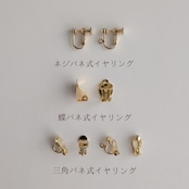 蝶バネ式で制作できない作品に限り、三角バネ式イヤリングでの制作となります