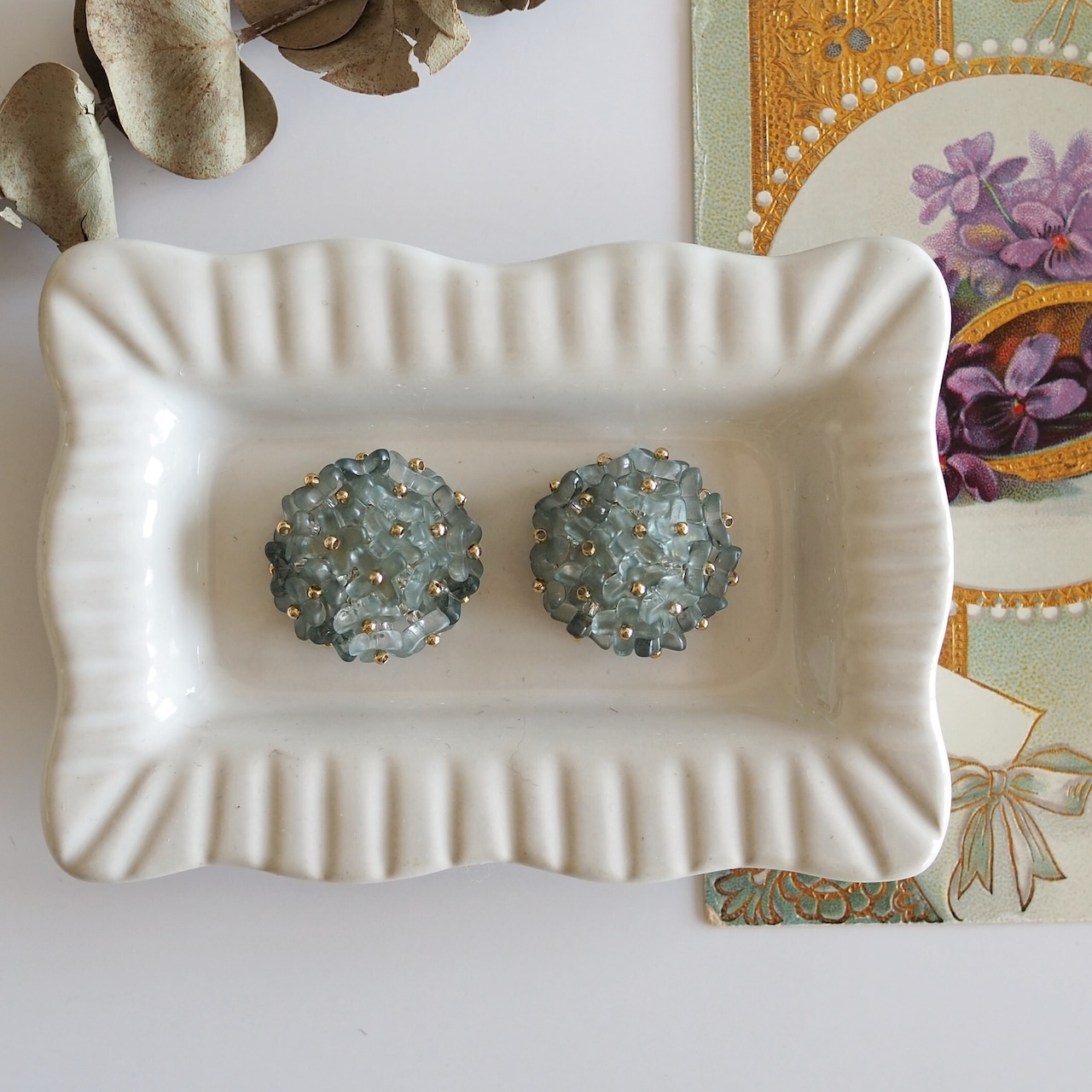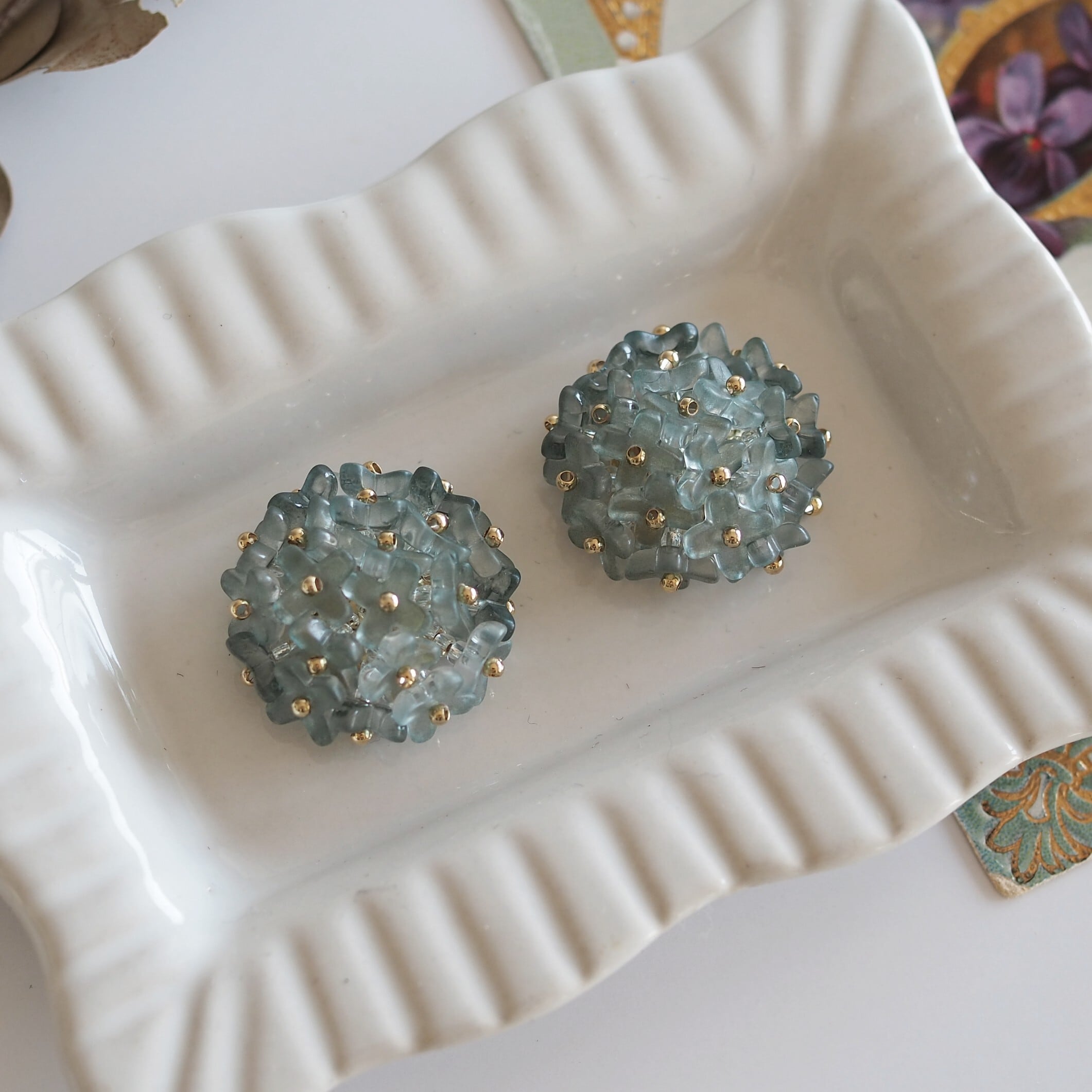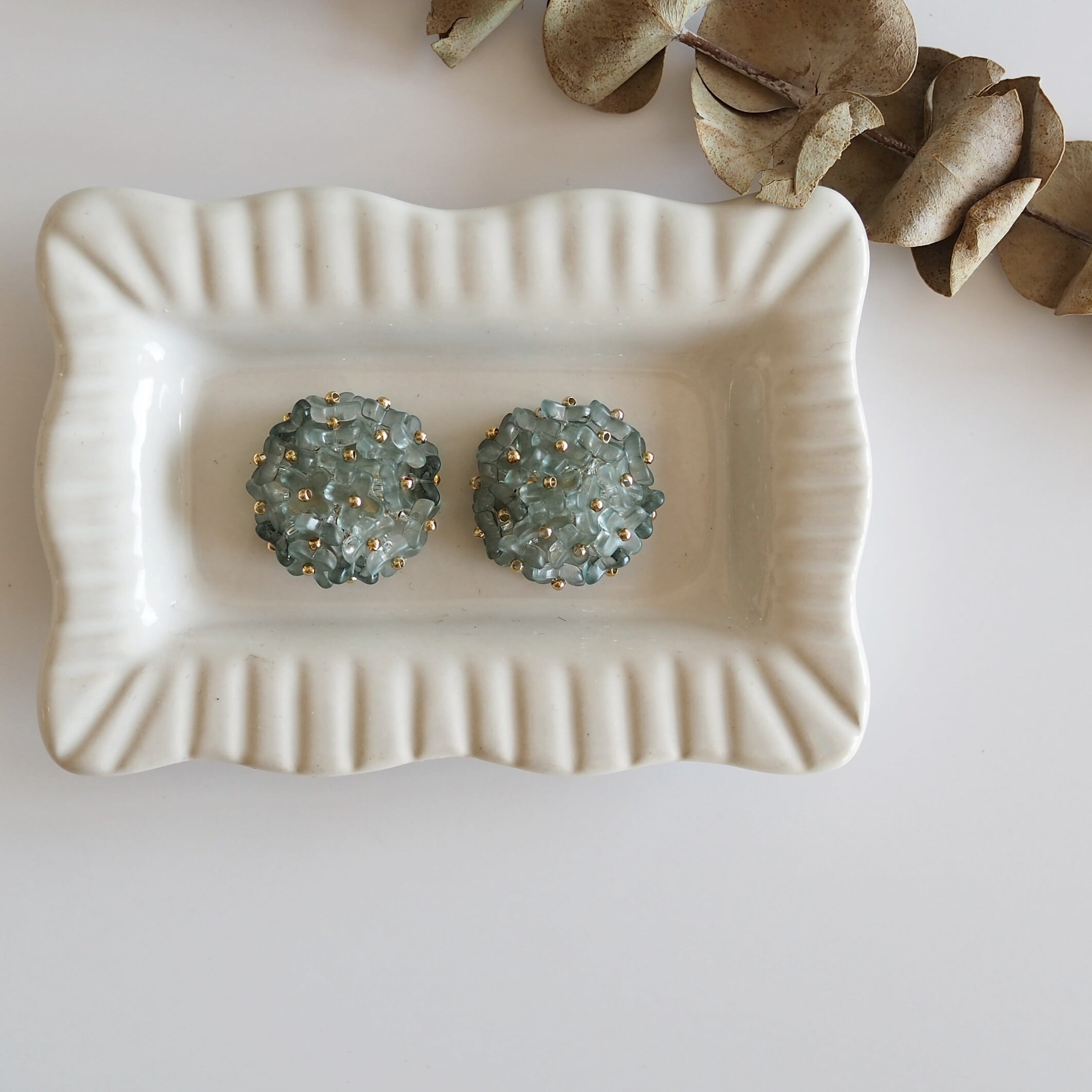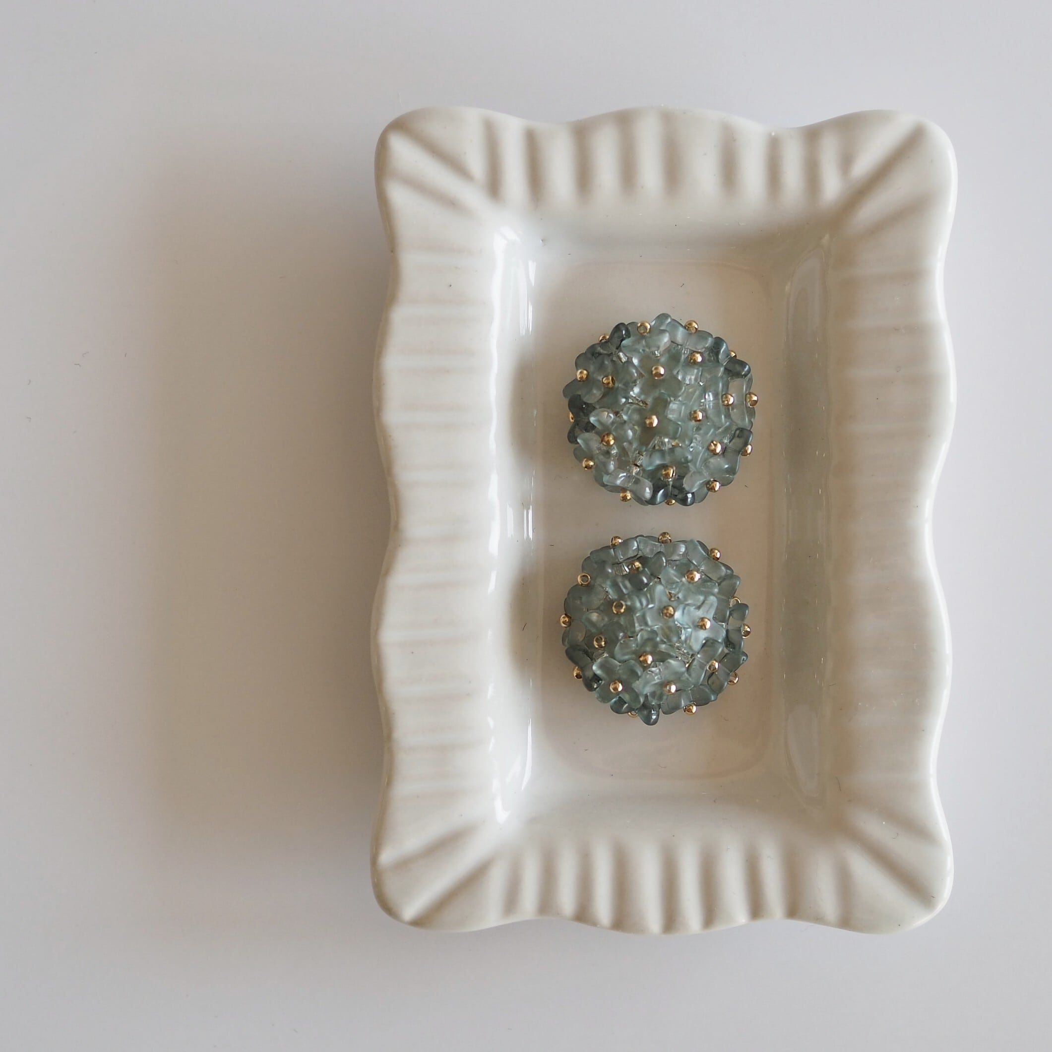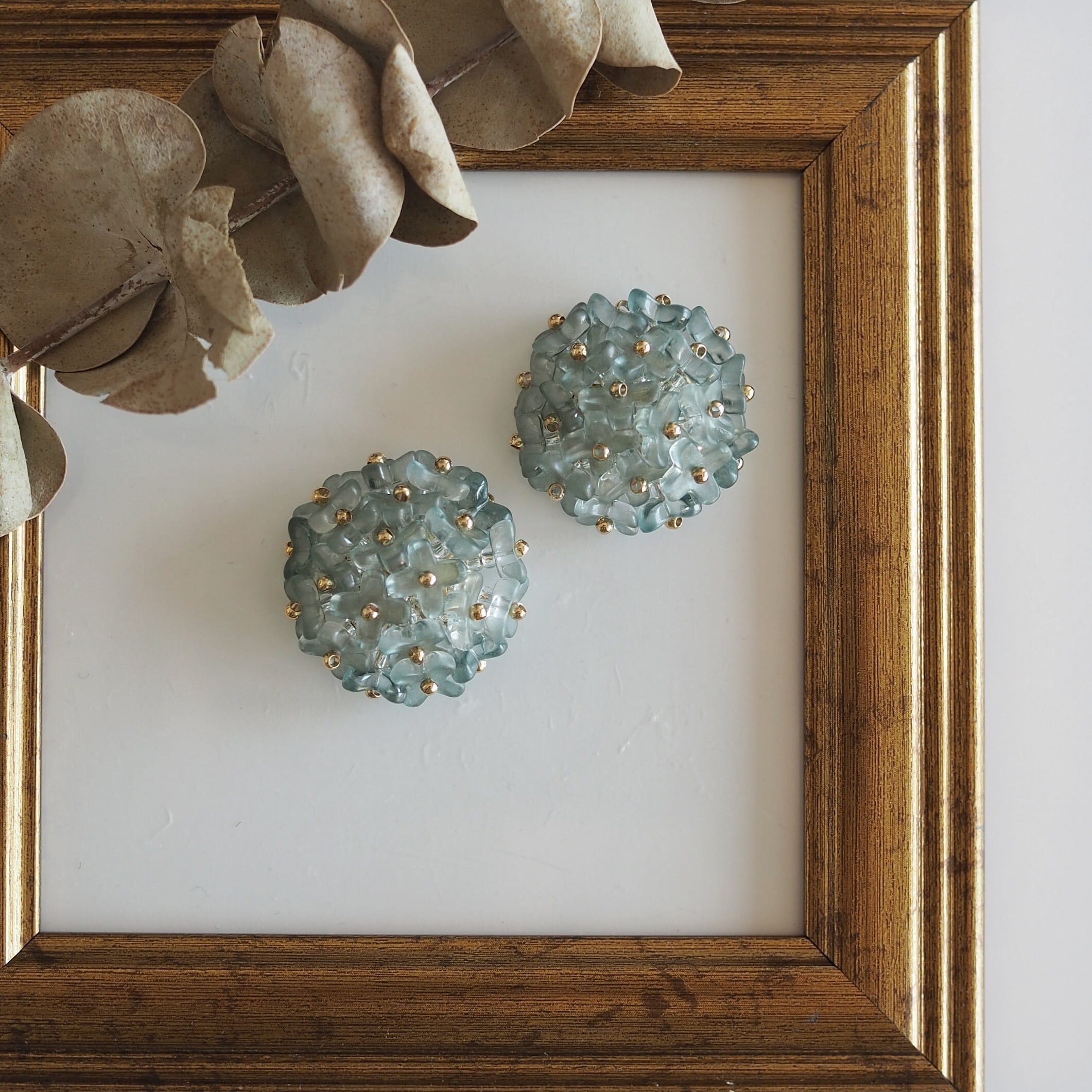 ブルーグリーンのガラスのお花ビーズを使用し、その瑞々しさを表現しました