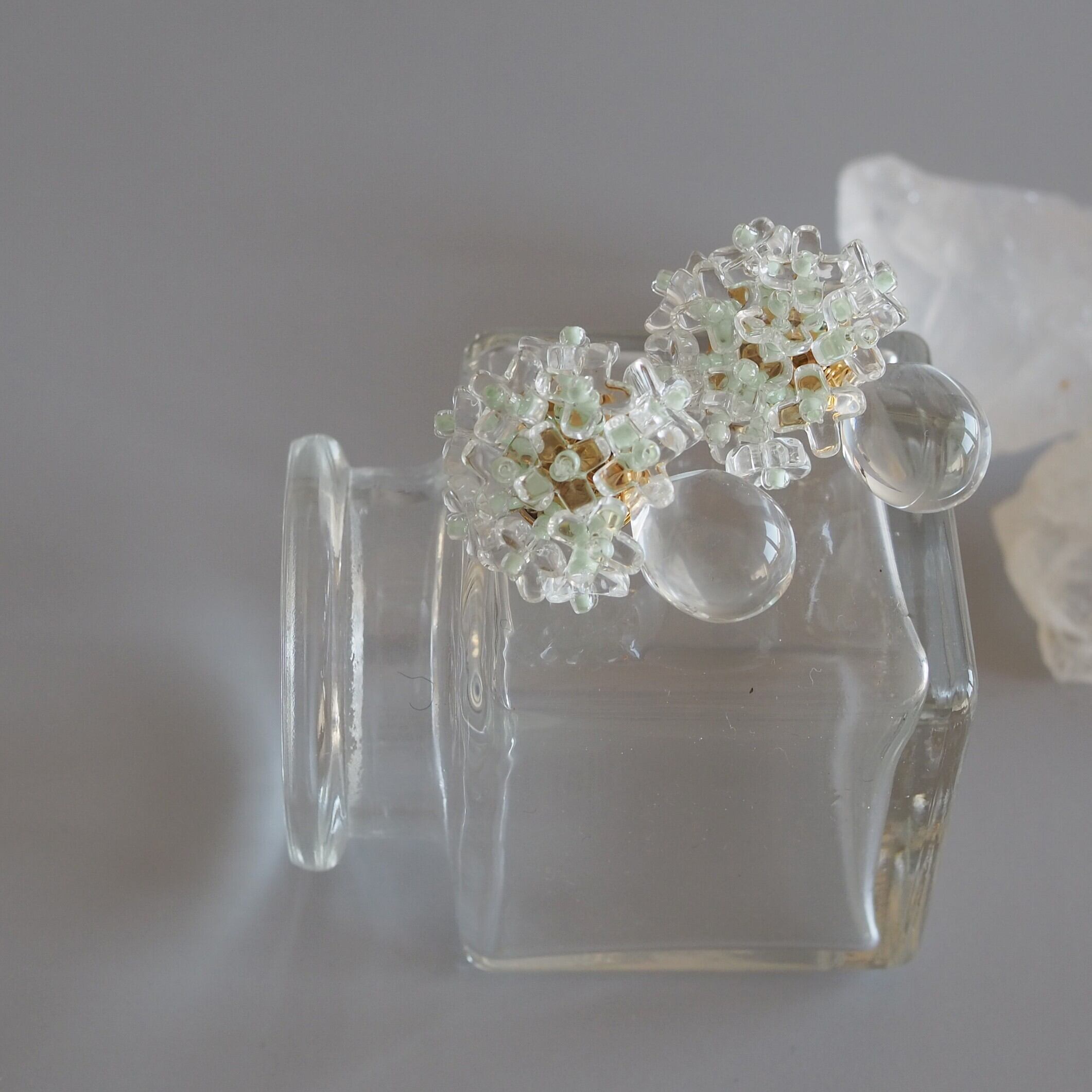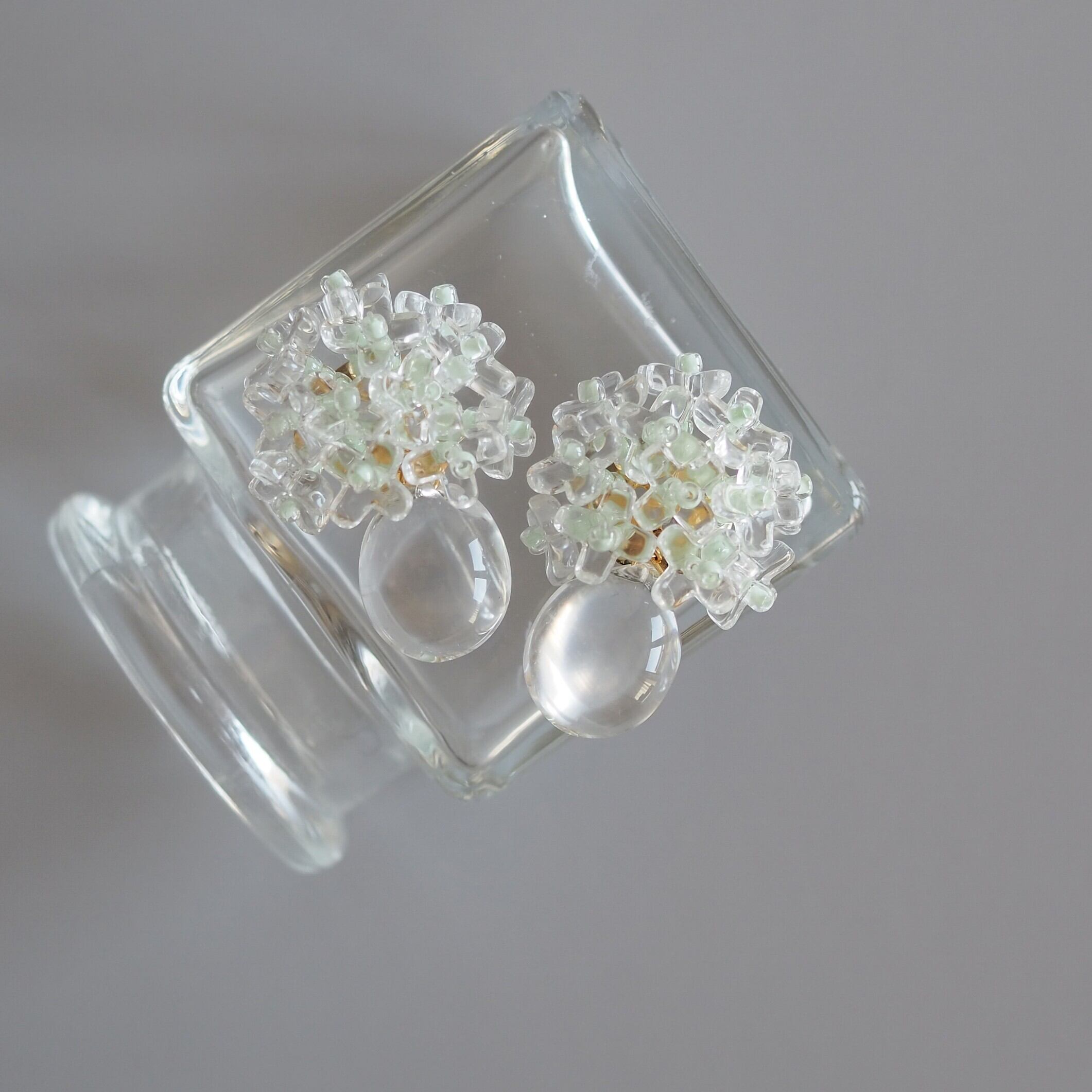 クリアガラスのお花ビーズを使用し、瑞々しさをたっぷり束ねたブーケ