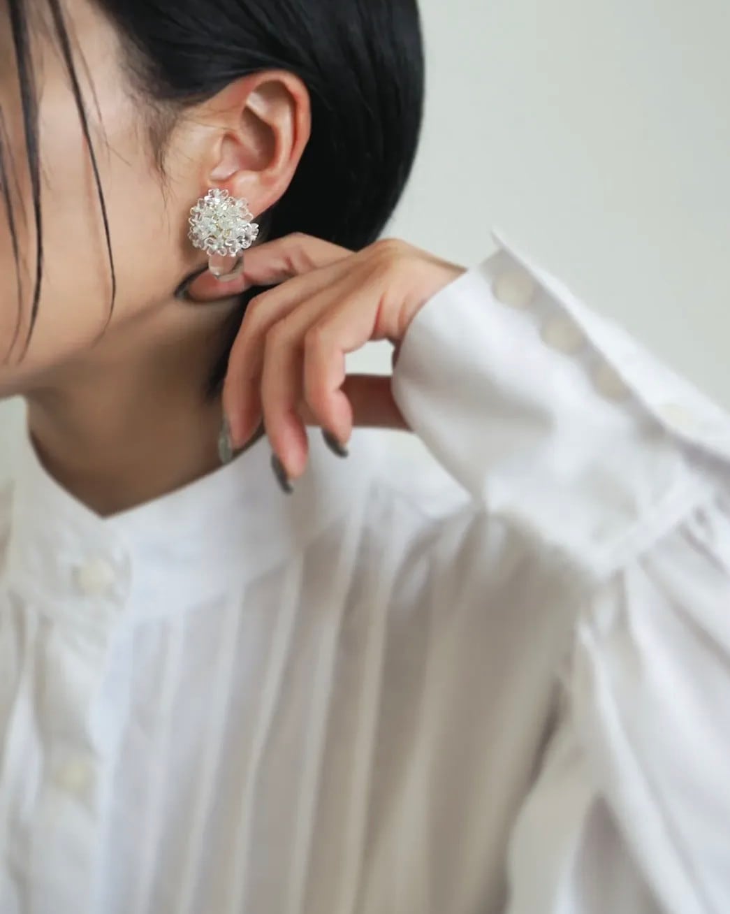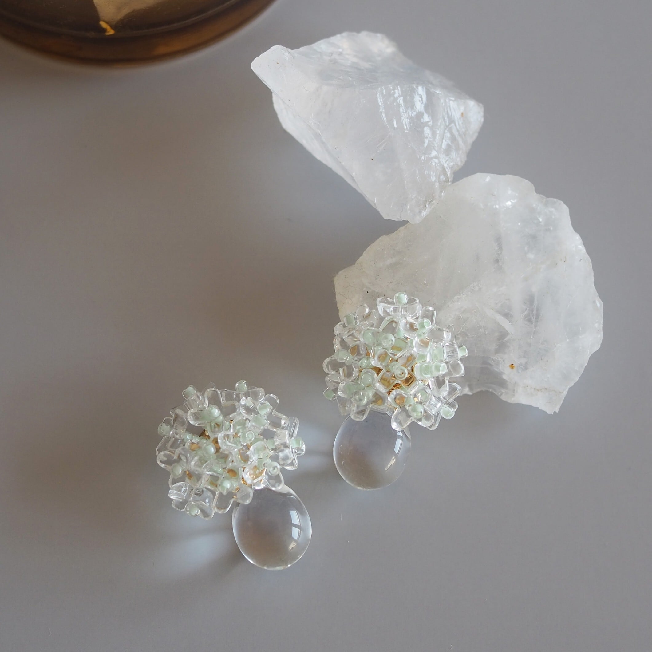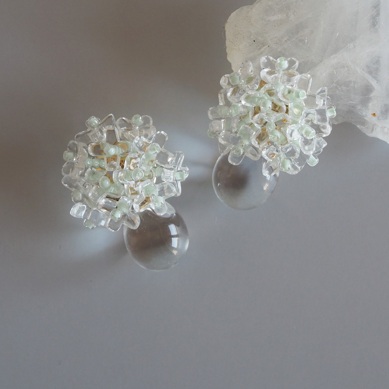淡いグリーンのビーズでほんのひとさじ色味を入れると