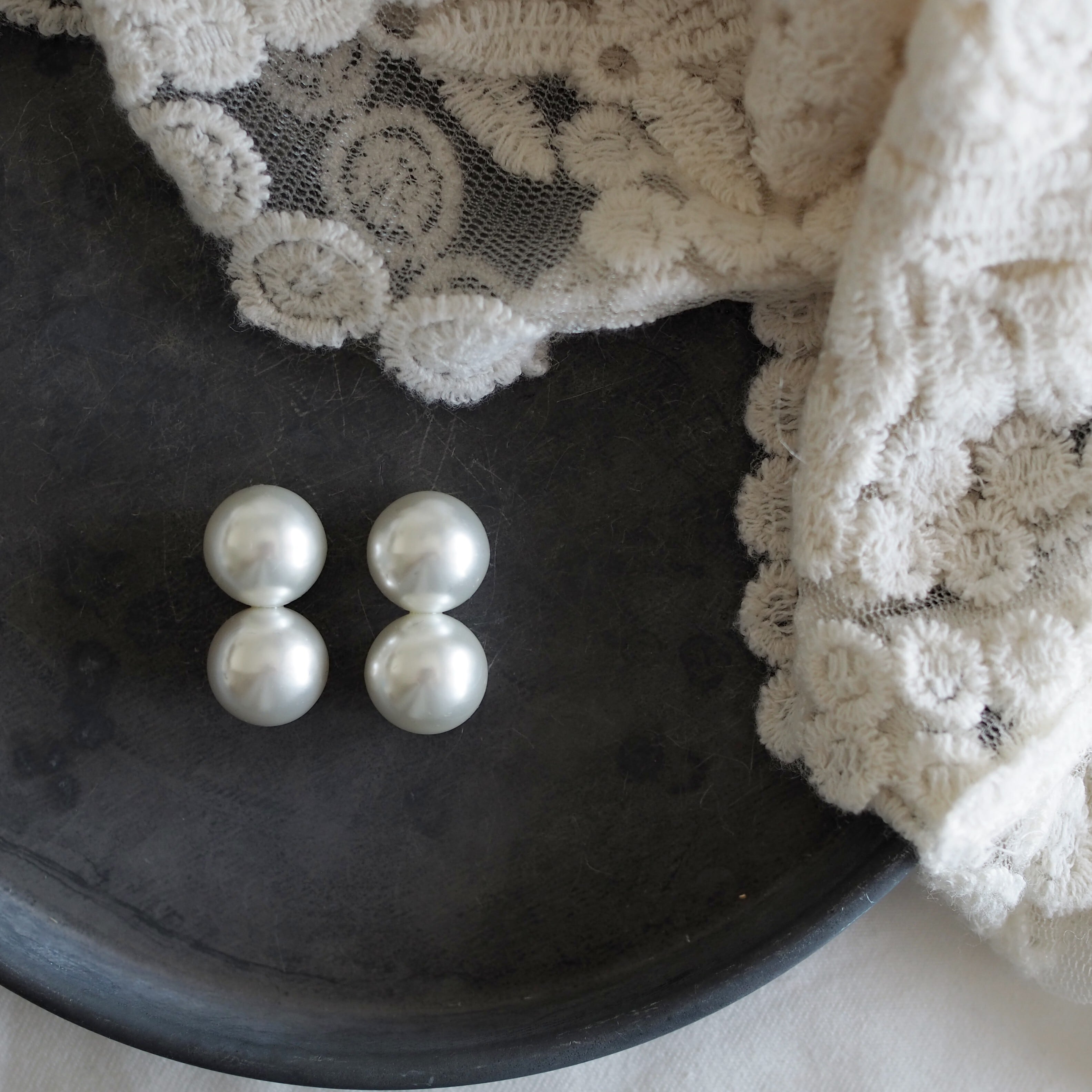 ツヤのきれいなパールを二粒、行儀よく並べたきれいなピアス/イヤリング