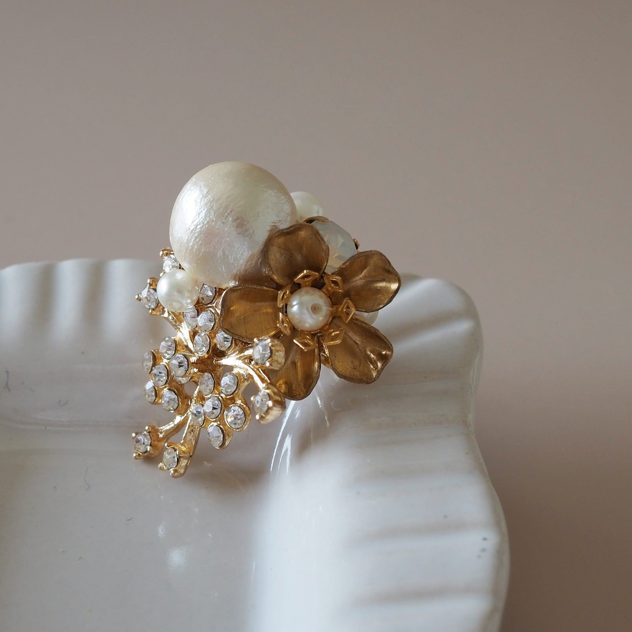 コットンパールや真鍮を合わせた華やかなブローチ