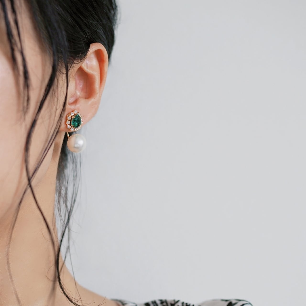 そちらを使用して頂ければ、エメラルドのビジューピアスのみでもお使いいただけます