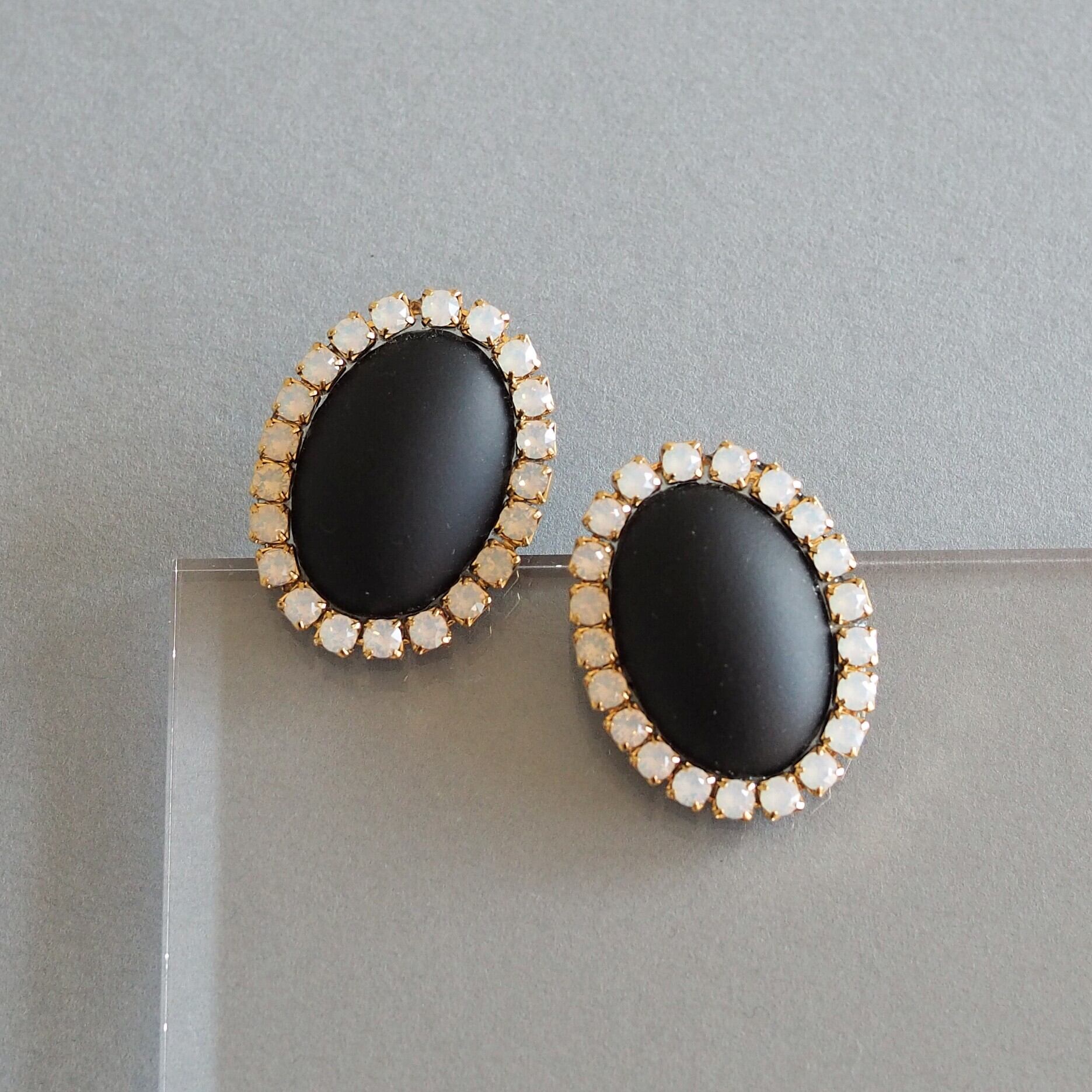 マットなカボションとガラスストーンの輝き